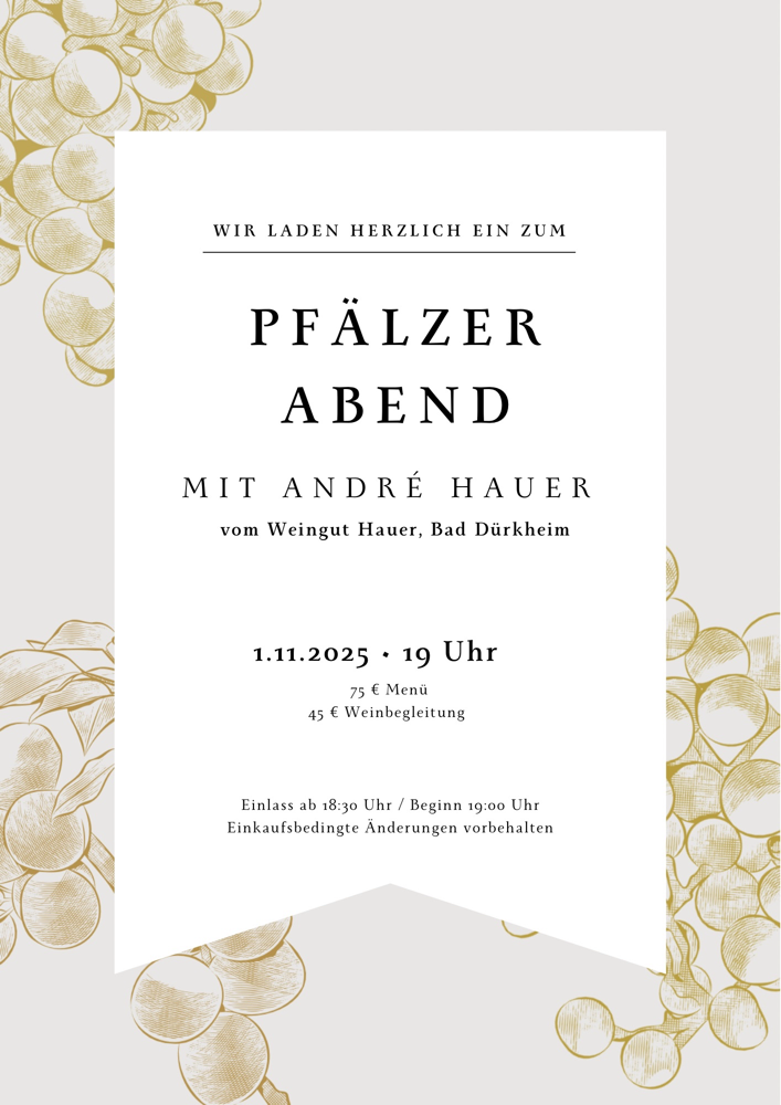 Auch in diesem Jahr freuen wir uns auf Winzer André Hauer und einen gemeinsamen Pfälzer Abend.